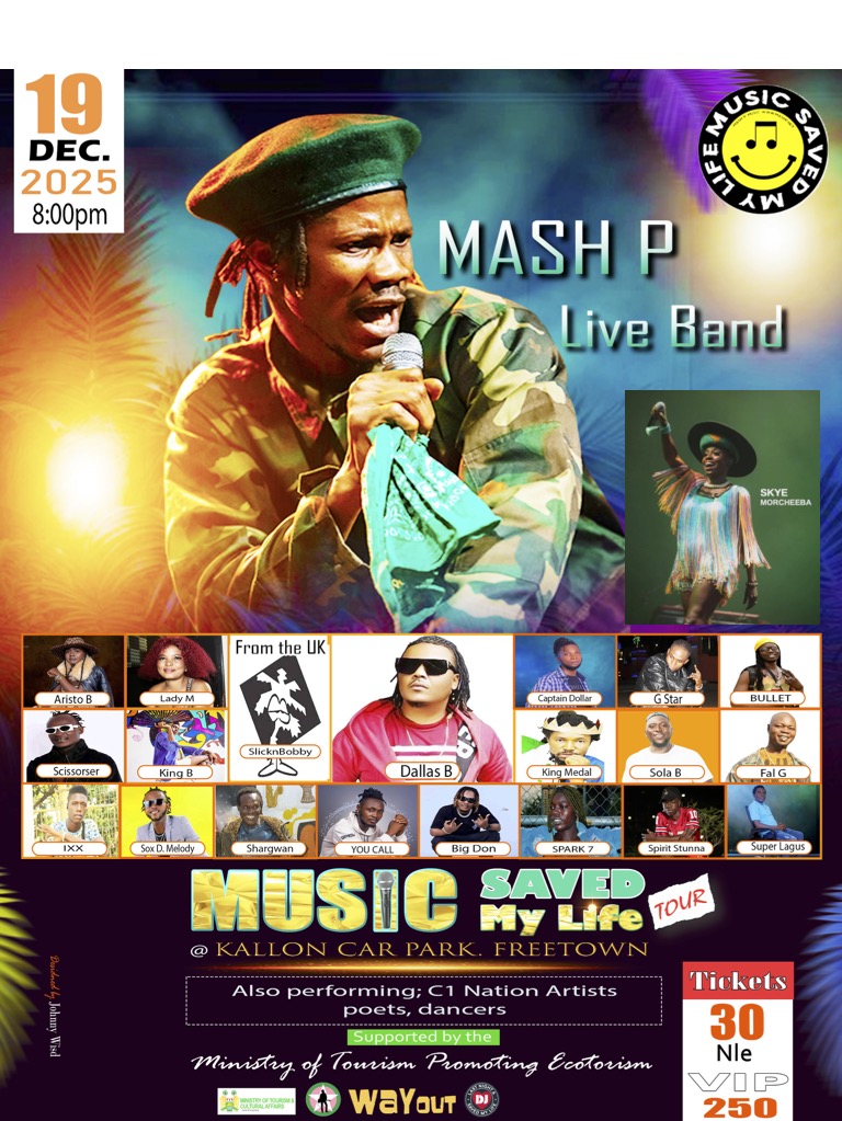 FIVE days to go! Mash P live at Kallon car park, Freetown. Ft Skye of Morcheeba, SlicknBobby from the UK, Dallas B and WAYout artists. Tickets available from +23273770581